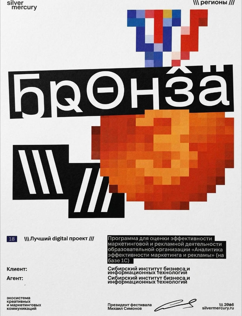 Сибирский институт бизнеса и информационных технологий (СИБИТ) успешно показал себя на одном из самых авторитетных отраслевых конкурсов – федеральном фестивале маркетинговых и рекламных проектов Silver Mercury.